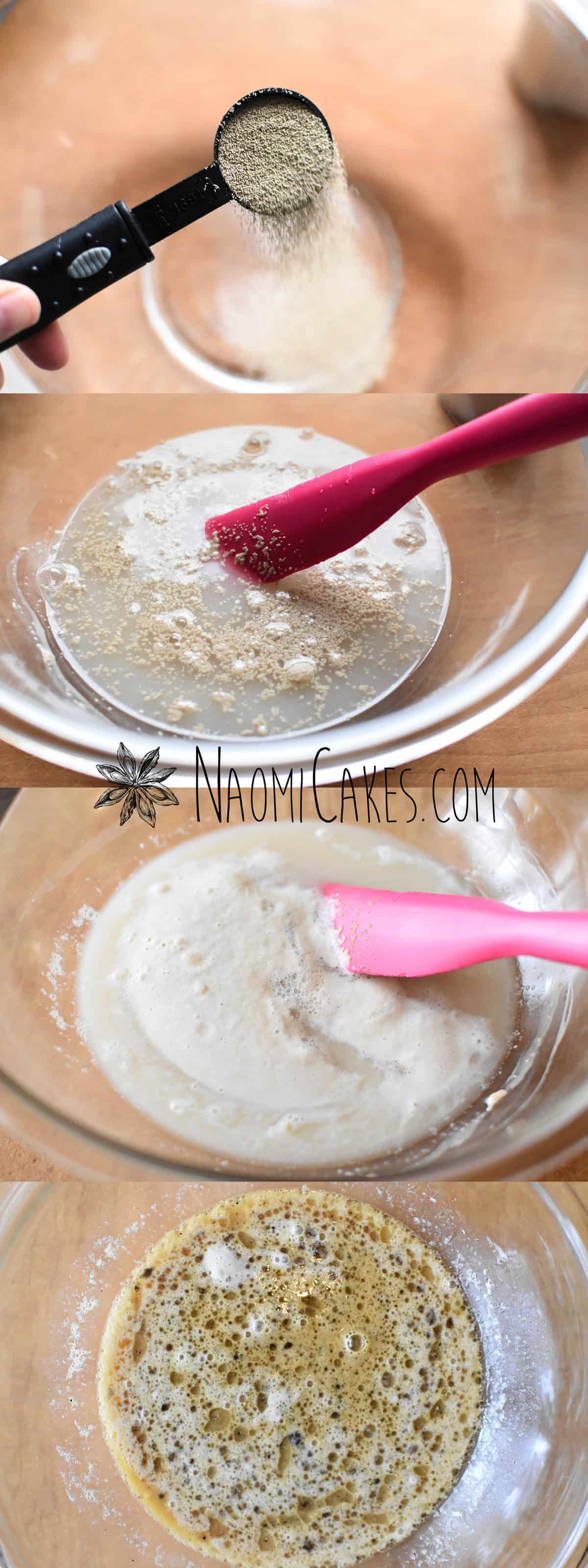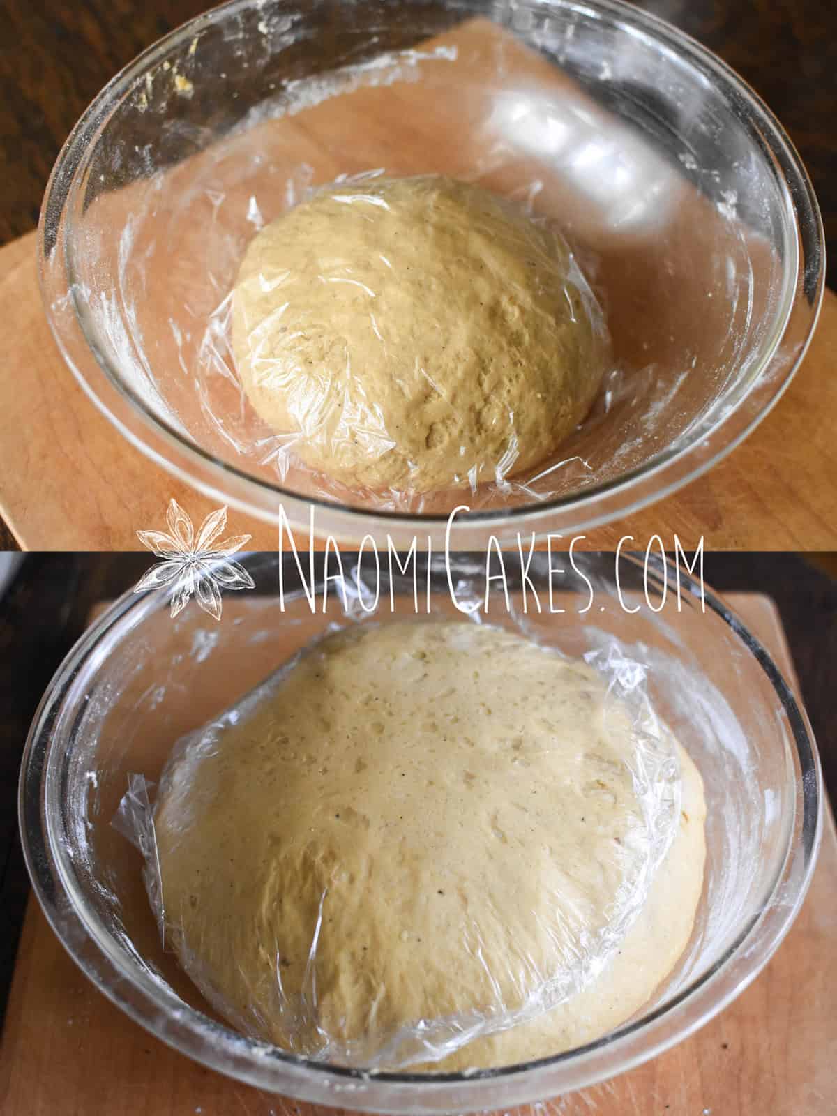 Note: To test if the dough is risen enough, stick your finger into the dough – if an indentation remains without shrinking back where your finger was, it is ready to use.