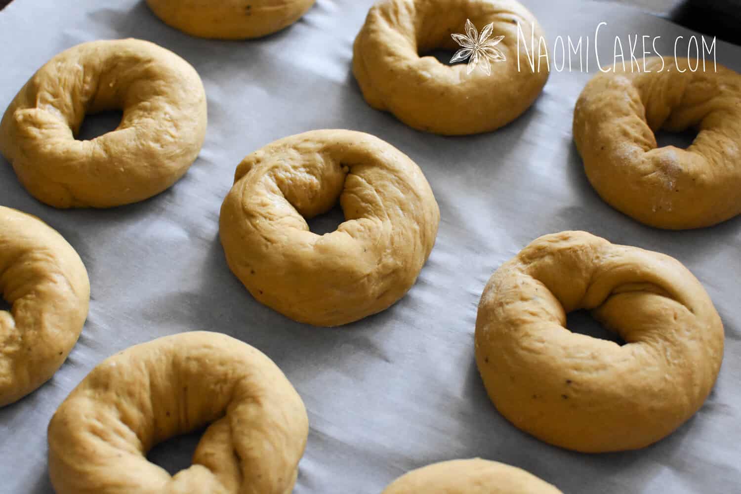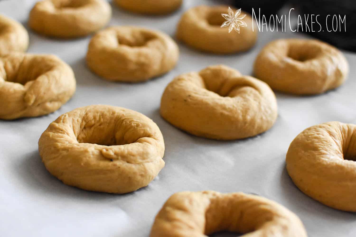 From there, the bagels will proof a second time at room temperature. I always keep this part very short, since the bagels will need to be boiled before they are baked. The bagels will rise to double their original size during the boiling process as well, so it’s important not to let the dough rise too long before that step.