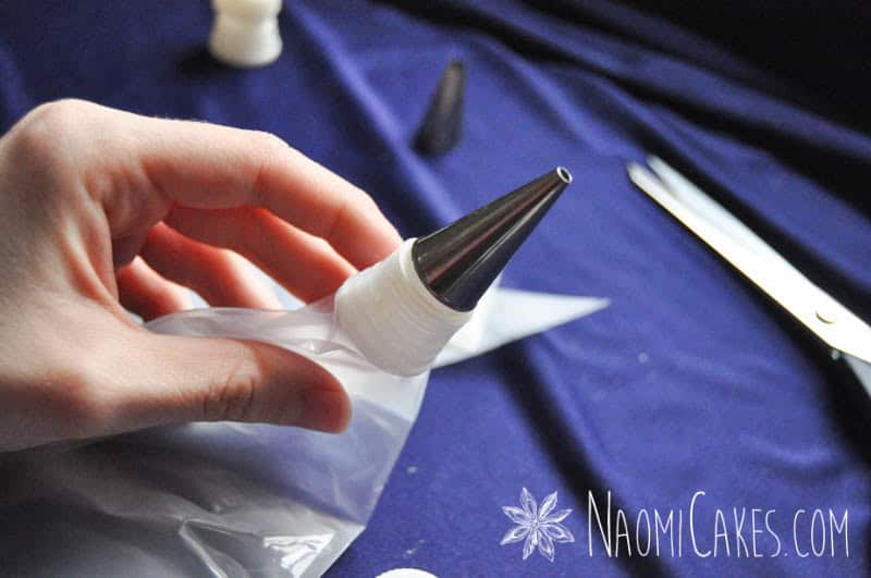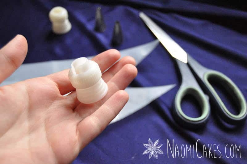 Couplers are little plastic attachments that allow you to change piping tips without changing piping bags. So for example, if you have 5 different patterns that you want in the same colour, you don’t have to make 5 bags. You can just make one, and then switch the tip when you need to. While you don’t *need* a coupler for your cake decorating needs, I do recommend them to make your life a lot easier!