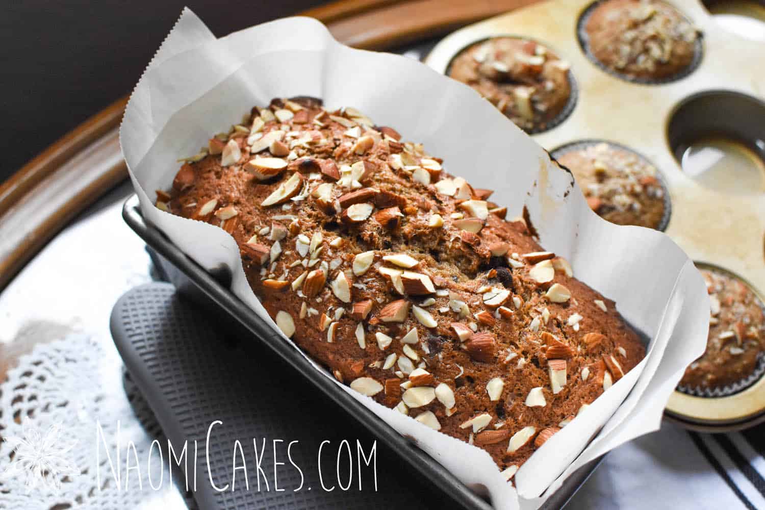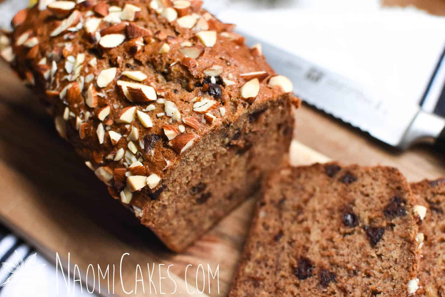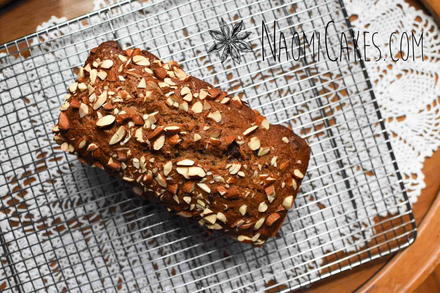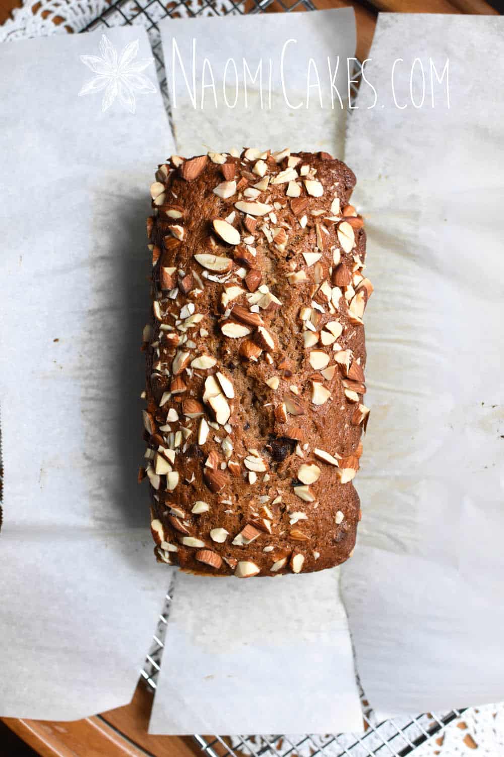 This bread is not too sweet, accented by chocolate, nutty (from the flour and nuts), smooth (from vanilla), and just a touch spiced (with cinnamon).