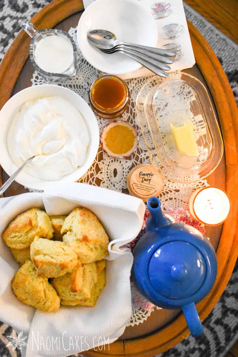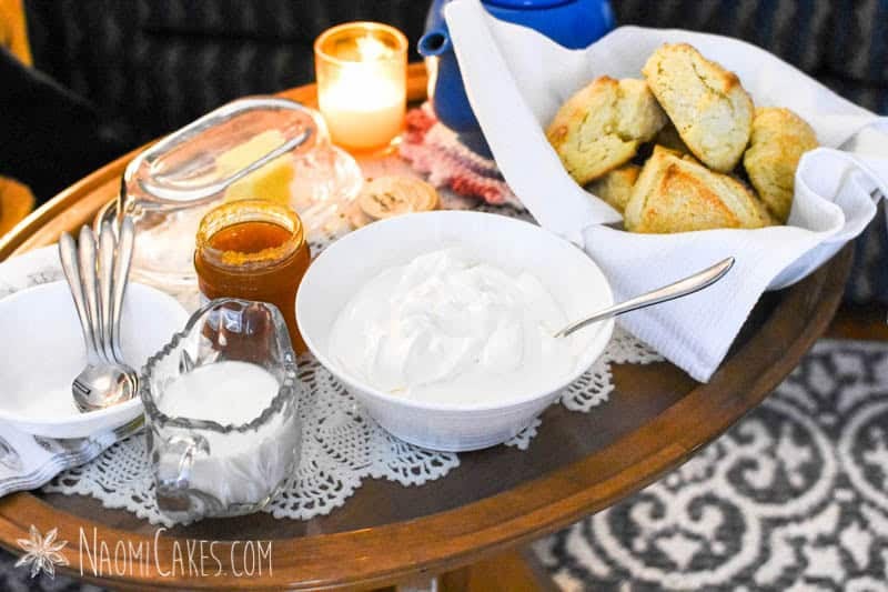 I recently learned that the difference between Devonshire Cream and clotted cream was simply that in Devonshire, the cream would be spread on the baking first (like butter), and then the jam on top. In other parts of England, however, the cream would be spread over top of the jam. (It’s like the Butter Battle Book is real life!) How true this is, I’m not sure – but it’s interesting, to say the least!