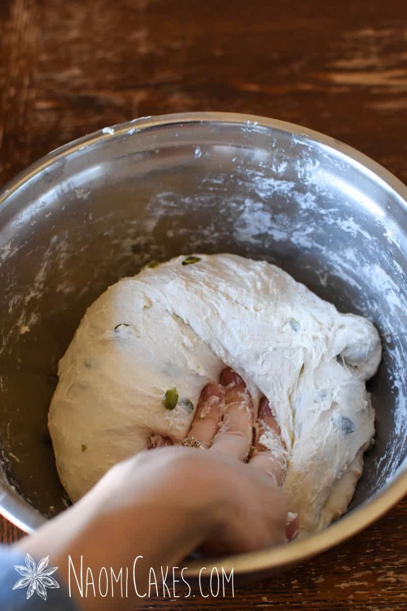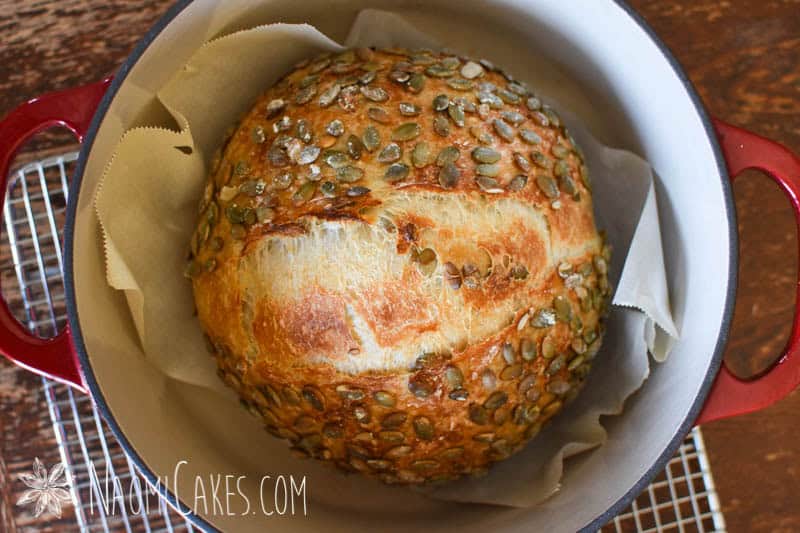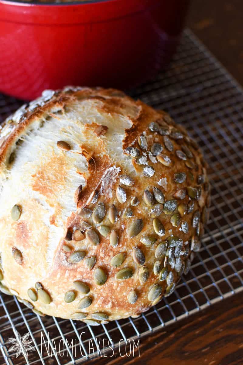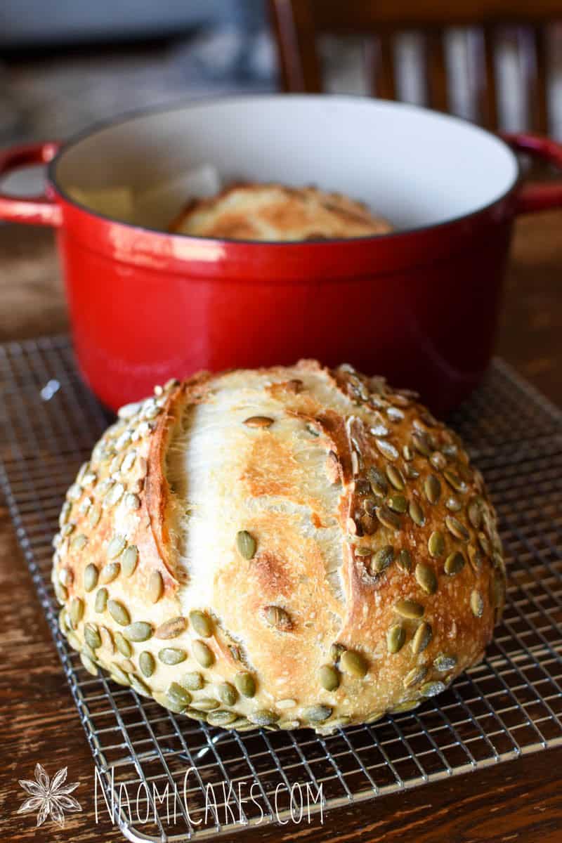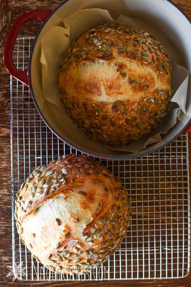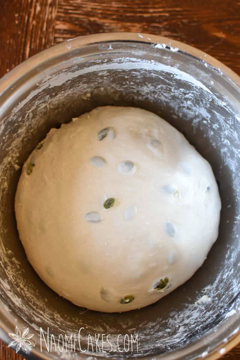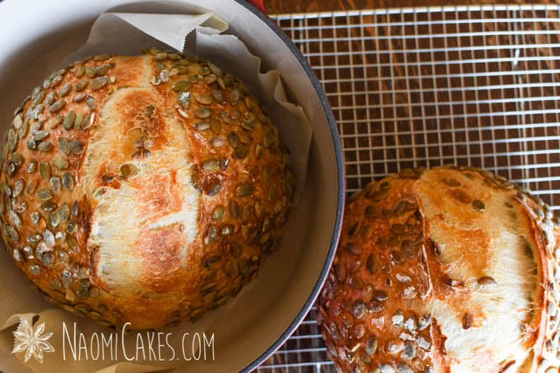 For this recipe, you can easily add some whole wheat flour or rye flour (about 1/2 cup to 1 cup/70g-140g) for 2 loaves, or substitute the pumpkin seeds for sunflower seeds or another type of seed (sunflower seeds yield the most similar flavor for this recipe). Sesame seeds are a delicious seed to roll your loaves in as well.