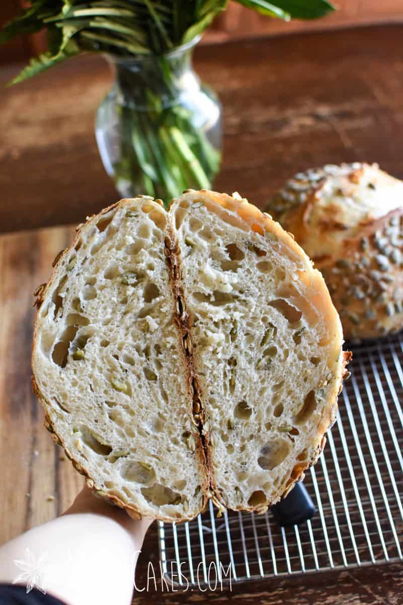 This sourdough pumpkin seed bread is one of my absolute favourite recipes. It has the incredible well-developed flavour of fermented bread, the buttery rich taste of pumpkin seeds, a silky soft interior and a golden brown, crunchy crust. Need I say more?