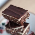 This is a great make-ahead dessert for any occasion, but they are most traditional to make for Christmas! Where I live, as Christmas everything starts showing up in the grocery stores, so do piles of red boxes everywhere filled with Nanaimo Bars.