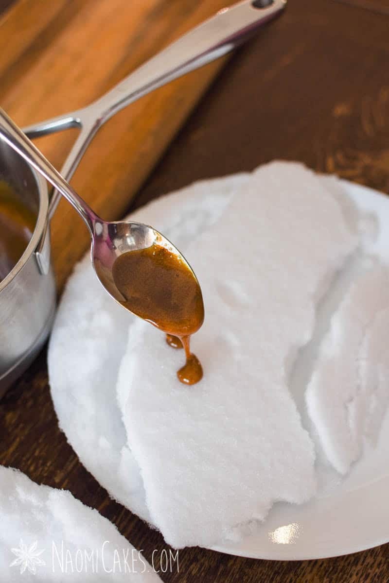 Tip: You can also easily load up a baking sheet with a lot of snow and make more homemade candy for more people, all in one place.