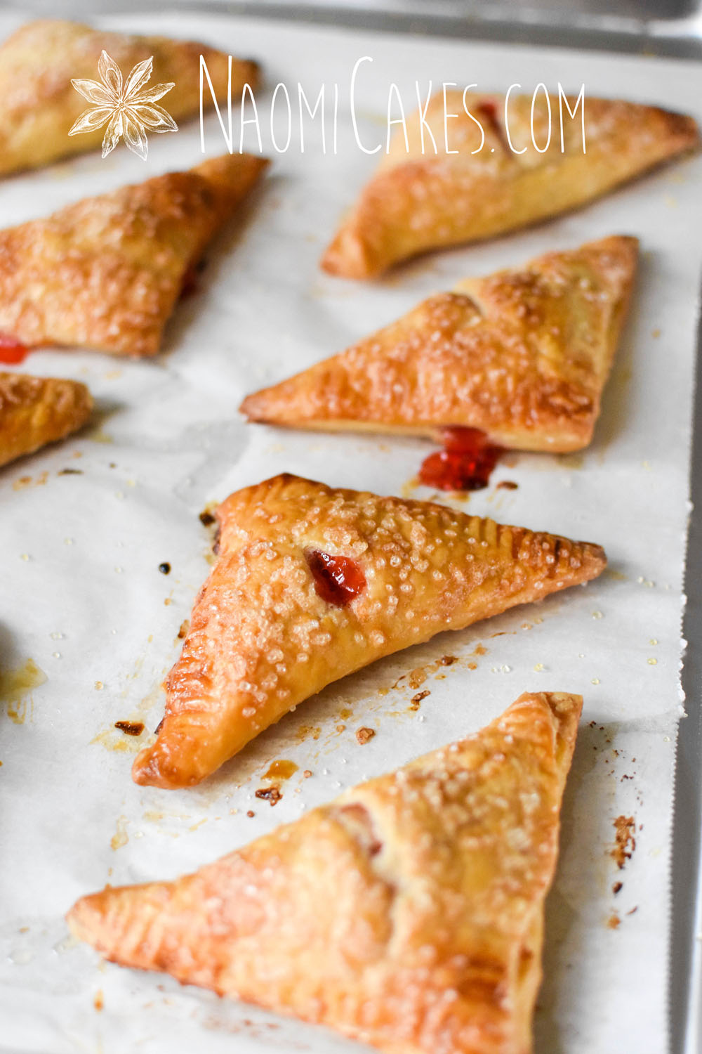 Puffy, flaky, buttery goodness - filled with cherry pie filling and sprinkled with coarse sugar. These are one of the most rewarding things to make on your own at home -and so simple to do!