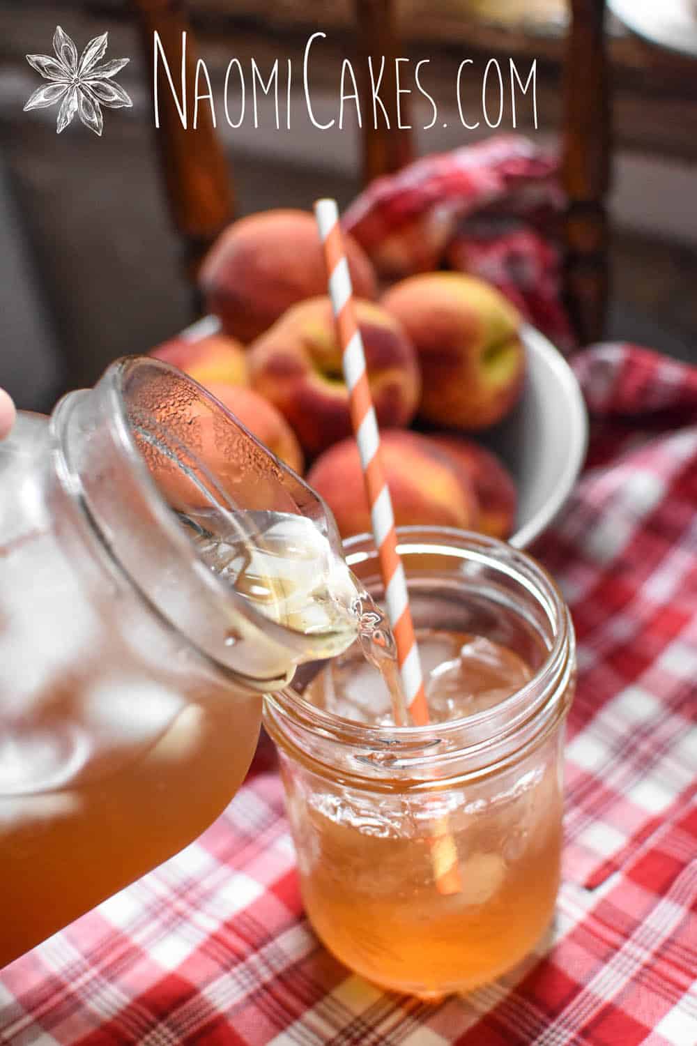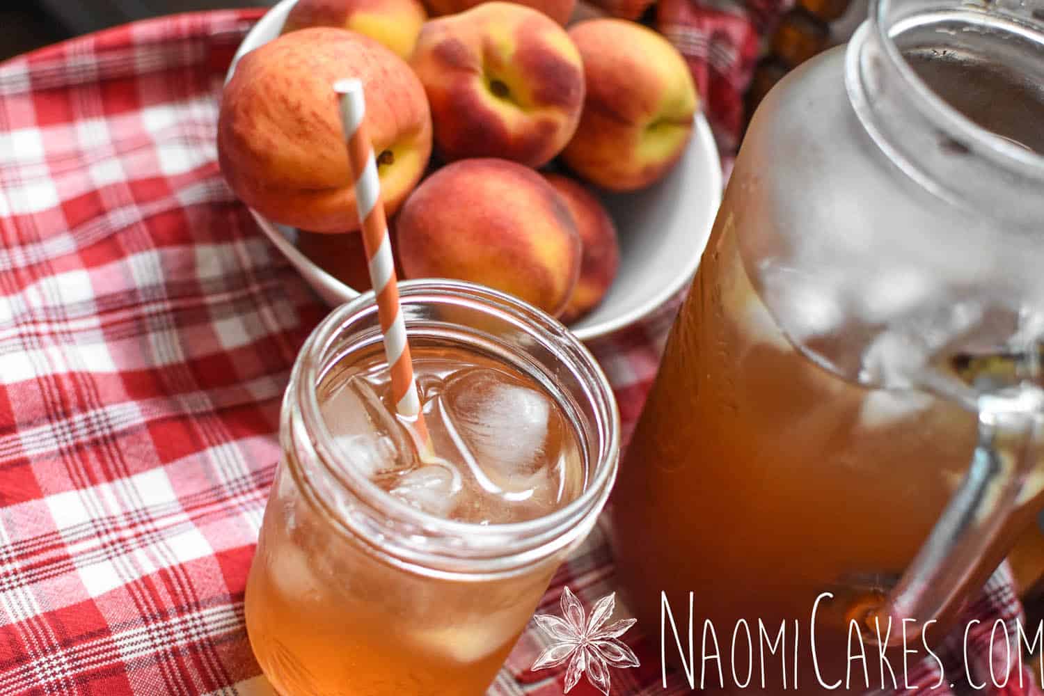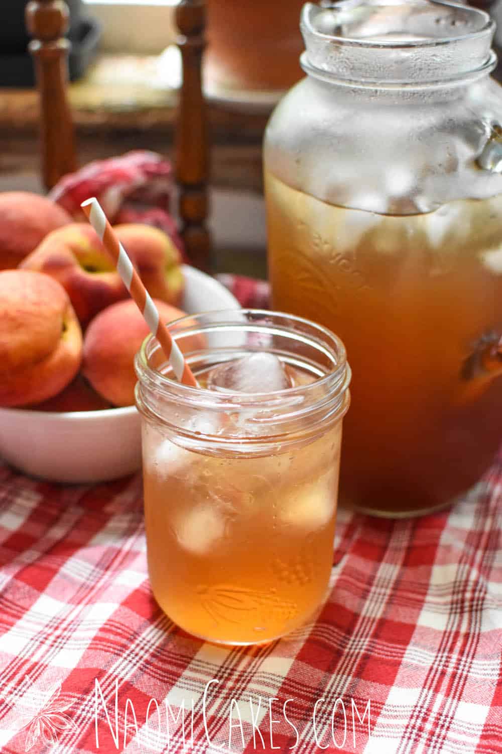 There you have it! Perfect peach iced tea, with that beautiful golden glow and all the joy of a refreshing cold drink for a hot summer day.