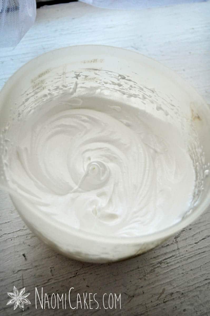 Note: It's ok if it doesn't quite form perfectly stiff peaks, but it should be close to that point. See picture for reference.