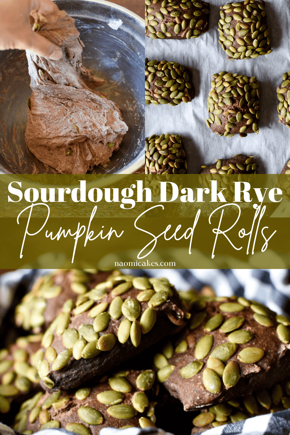 Ok, so today’s recipe is a bit of a mouthful to say, but I promise: it will also be a mouthful of delicious goodness to eat. Today’s recipe is for Sourdough Dark Rye Pumpkin Seed Rolls.