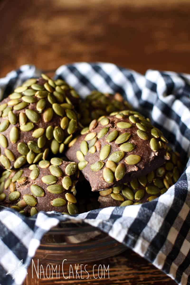 I’ve made these a few times now, and honestly they are just so good… The flavour of the dark rye is much like pumpernickel bread, with the depth of flavour that only sourdough can offer… and then of course, pumpkin seeds are just incredible. Buttery, crunchy, and nutty. It’s a great combination.