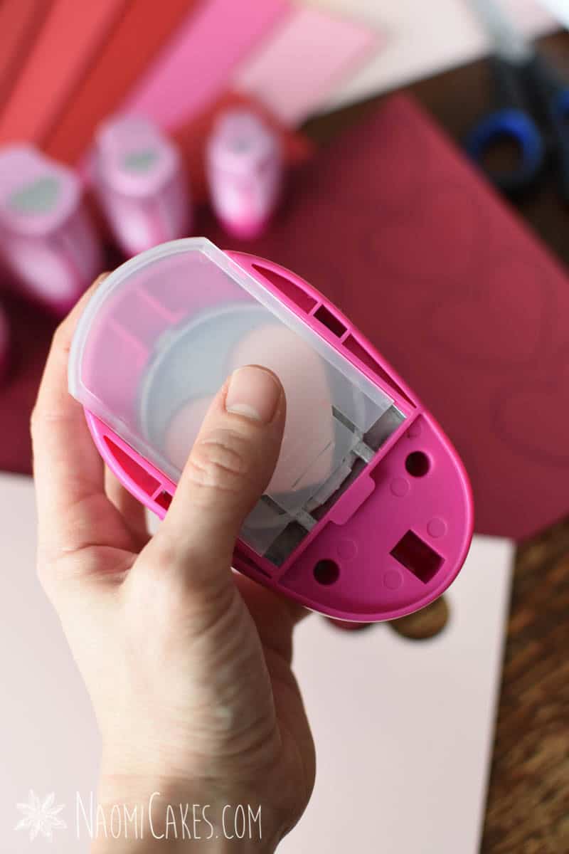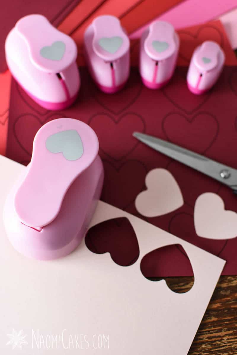 For this tutorial, I am using 92-lb colored card stock. However, you don’t have to use any particular type! You can easily use construction paper, scrapbook paper, or even just basic white paper, colored in with crayons, to make your paper hearts.