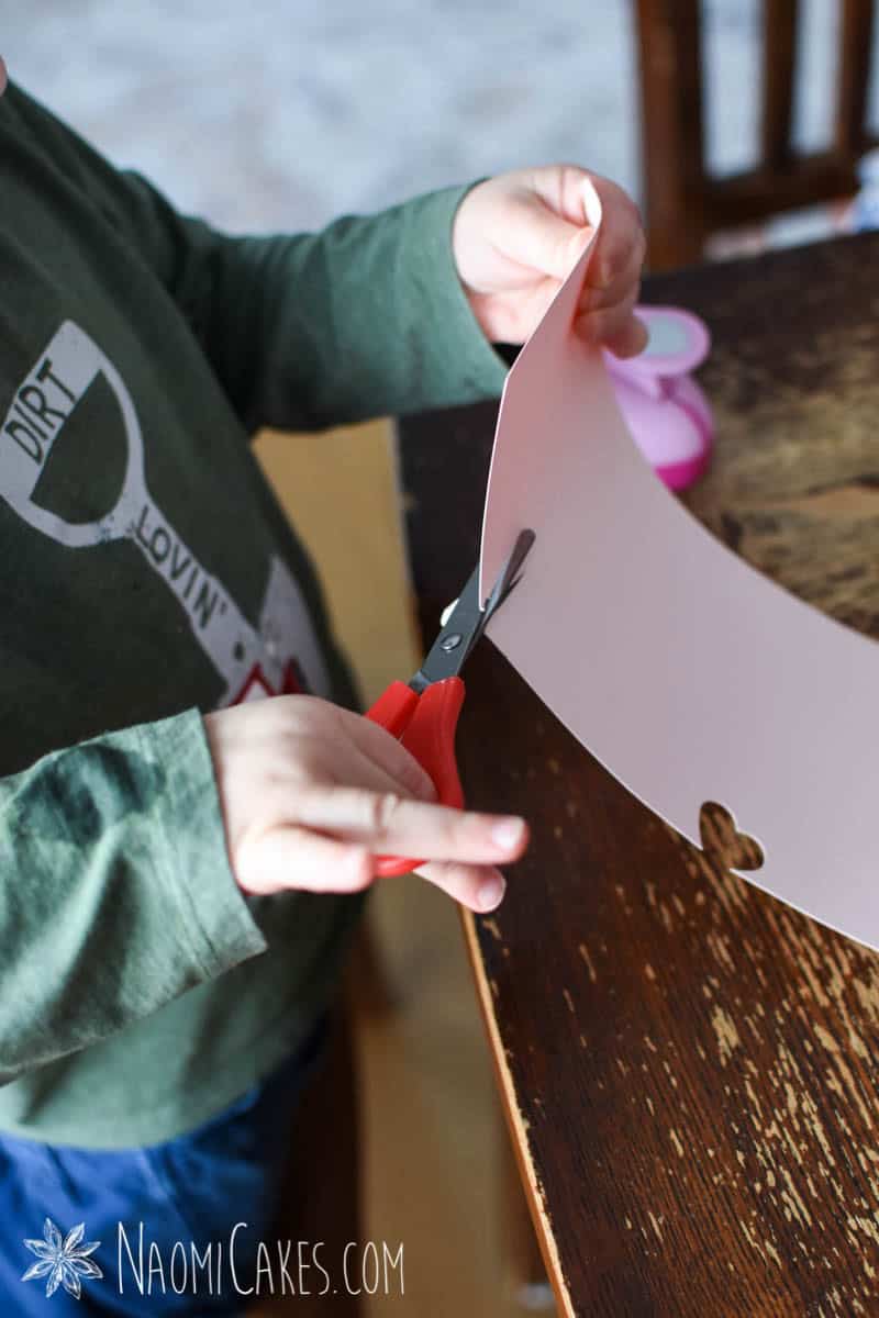 Note: The template used for this tutorial has nice clear, thick lines, making it easier for children to cut along the lines and get some pretty nicely shaped hearts.