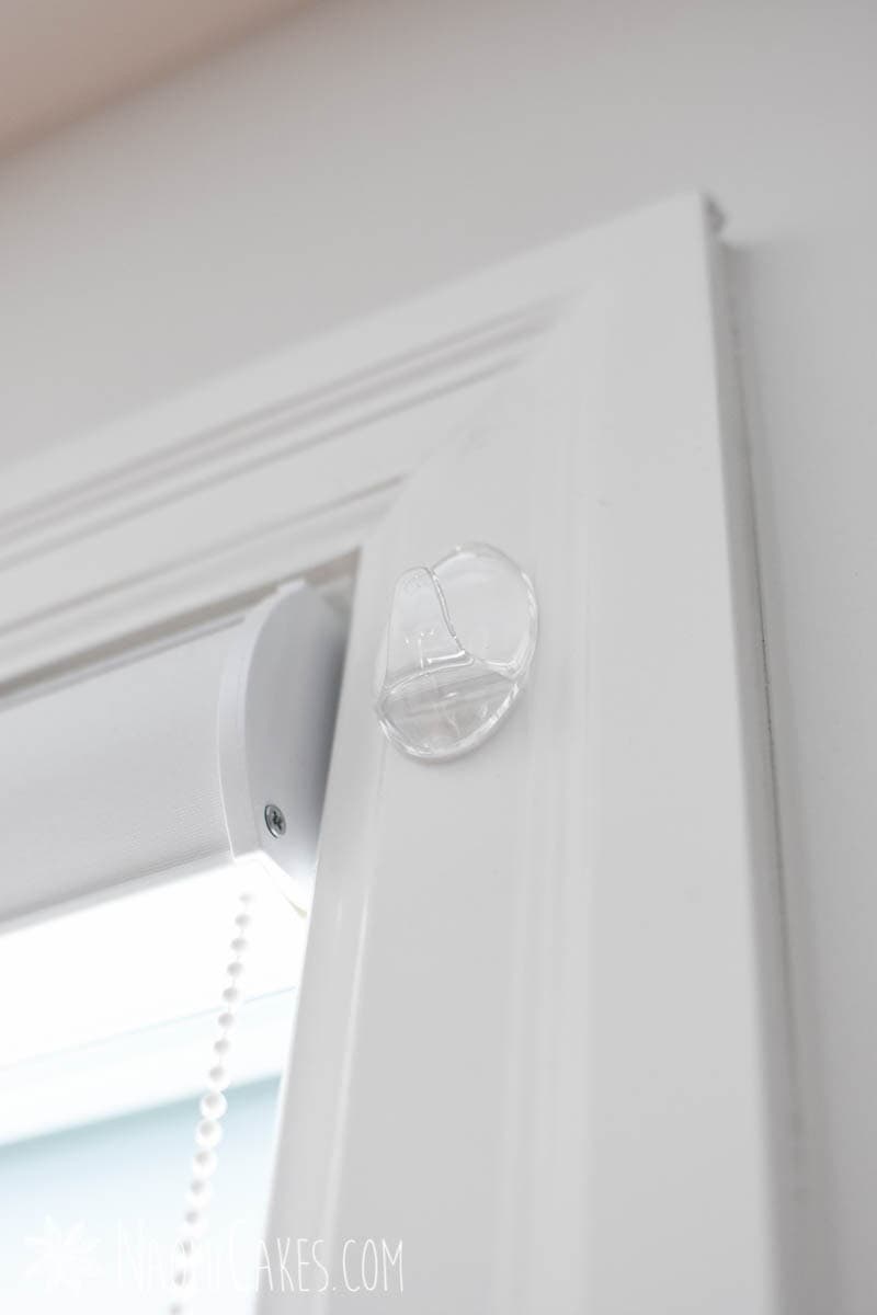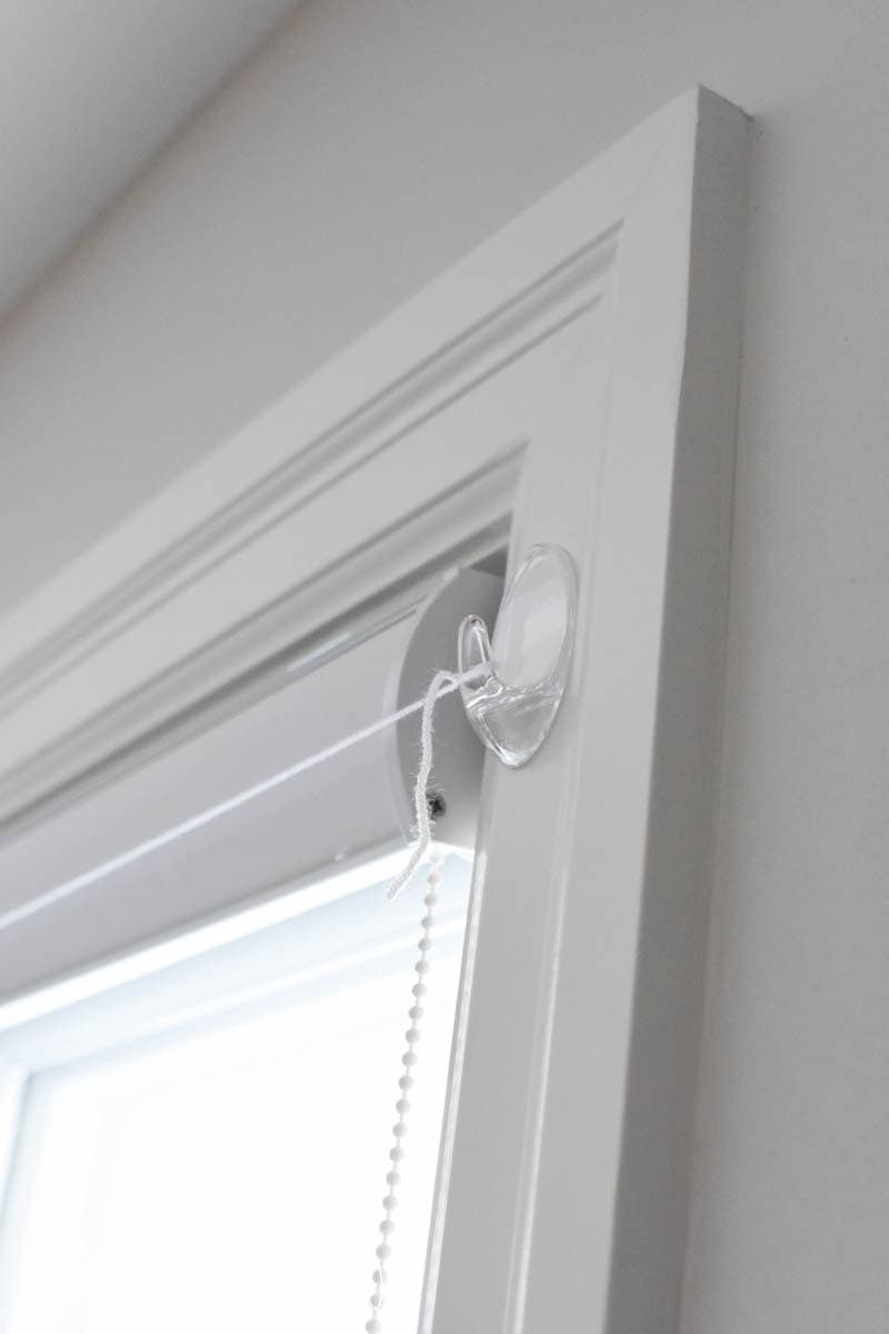 On either end of the window or door frame, stick some small clear wall hooks into place, to hold the garland in place. Make sure to measure approximately how far down the hook will stick on either side of the window, so that the string for the garland will hang in a straight line across.